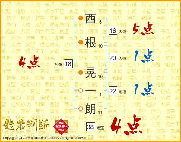 西根晃一朗さんの総運は38画の4点!