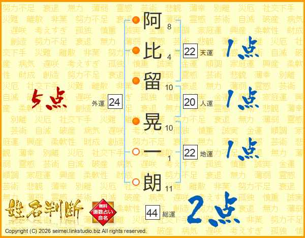阿比留晃一朗さんの総運は44画の2点!