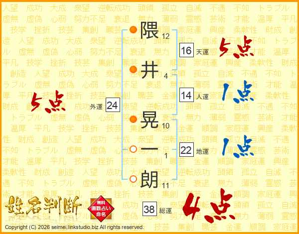 隈井晃一朗さんの総運は38画の4点!