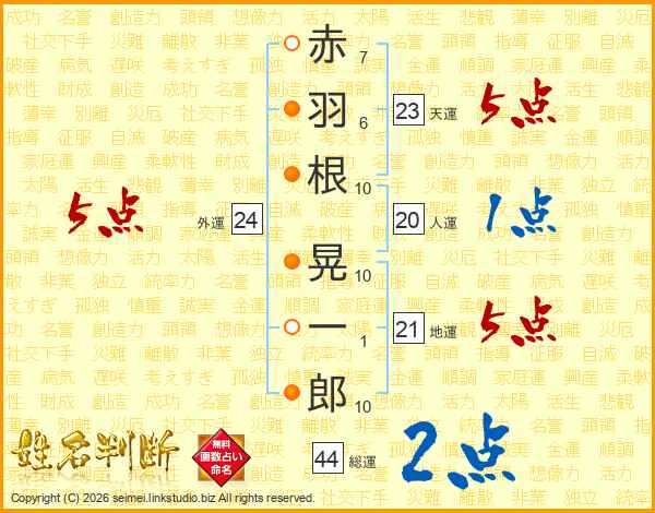 赤羽根晃一郎さんの総運は44画の2点!