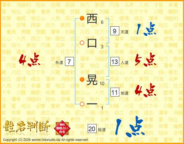 西口晃一さんの総運は20画の1点!