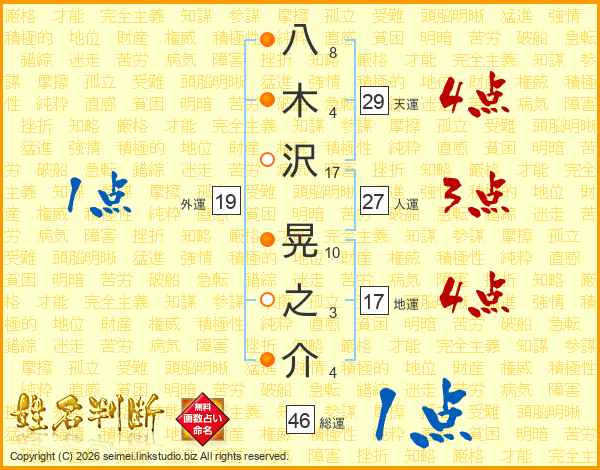 八木沢晃之介さんの総運は46画の1点!
