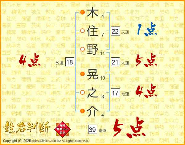 木住野晃之介さんの総運は39画の5点!
