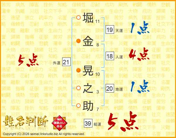 堀金晃之助さんの総運は39画の5点!