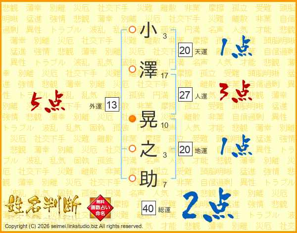小澤晃之助さんの総運は40画の2点!