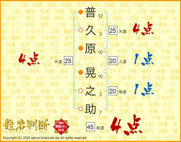 普(12画)久(3画)原(10画) 晃(10画)之(3画)助(7画)