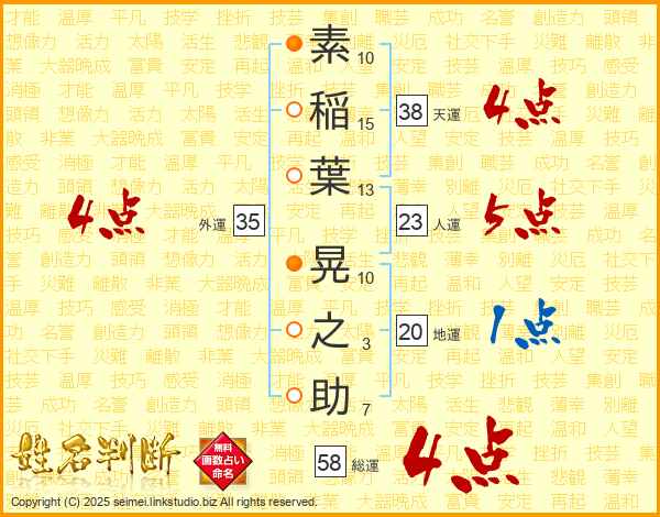 素稲葉晃之助さんの総運は58画の4点!