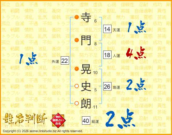 寺門晃史朗さんの天運は14画の1点!