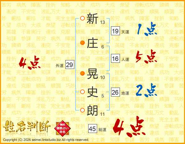 新庄晃史朗さんの総運は45画の4点!