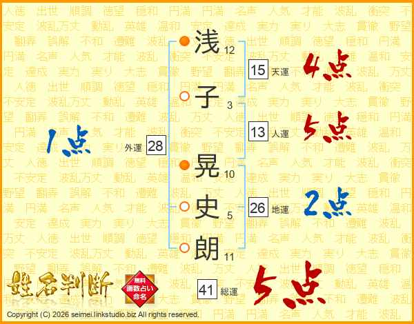 浅子晃史朗さんの総運は41画の5点!