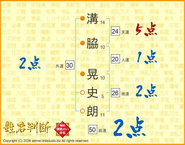 溝脇晃史朗さんの天運は24画の5点!