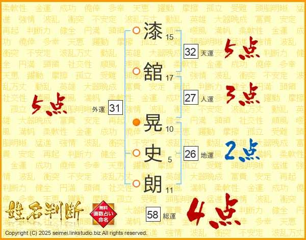 漆舘晃史朗さんの総運は58画の4点!