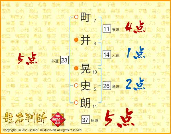 町井晃史朗さんの総運は37画の5点!
