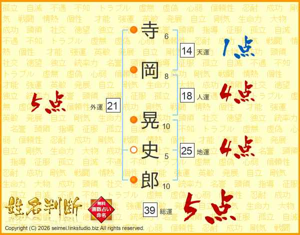 寺岡晃史郎さんの総運は39画の5点!