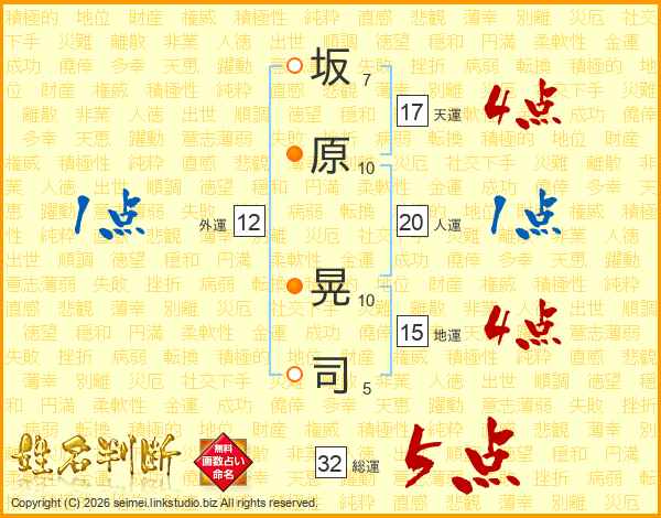 坂原晃司さんの総運は32画の5点!
