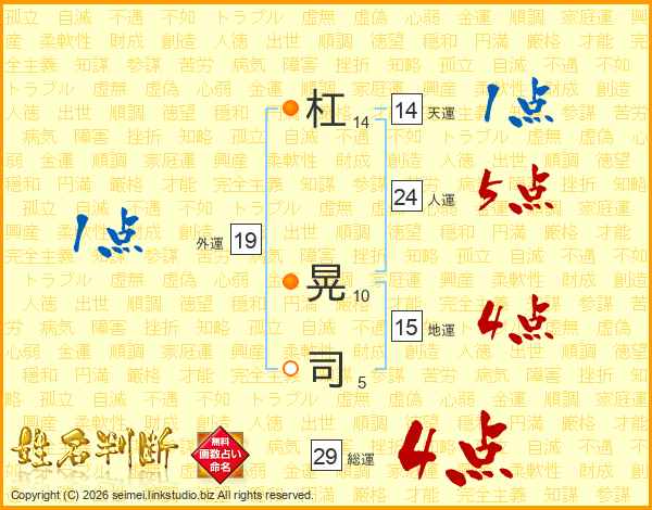 杠晃司さんの総運は29画の4点!