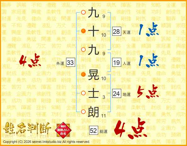 九十九晃士朗さんの総運は52画の4点!