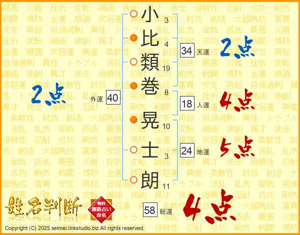 小比類巻晃士朗さんの総運は58画の4点!