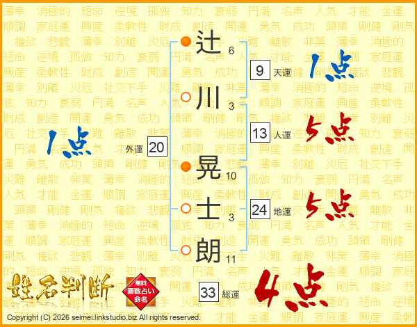 辻川晃士朗さんの総運は33画の4点!