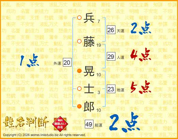 兵藤晃士郎さんの総運は49画の2点!