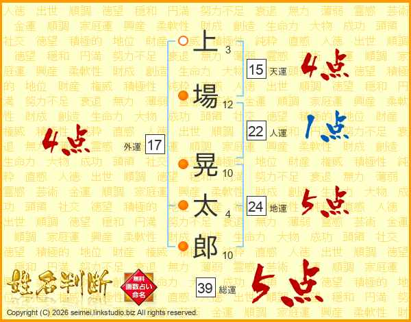 上場晃太郎さんの総運は39画の5点!