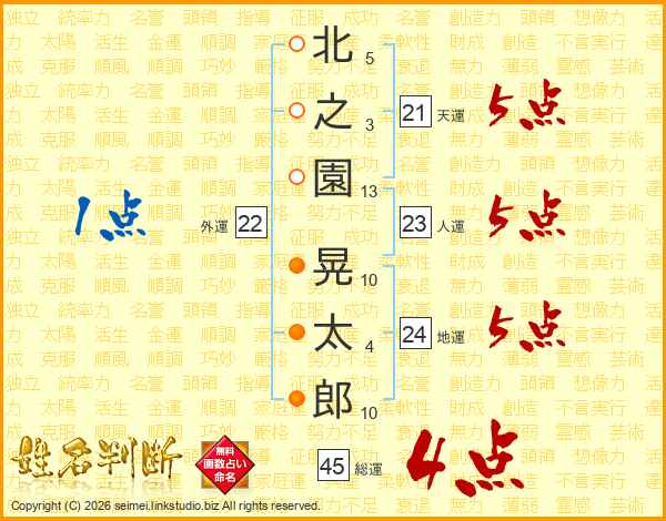 北之園晃太郎さんの総運は45画の4点!