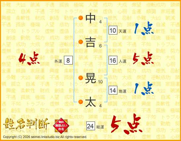 中吉晃太さんの総運は24画の5点!