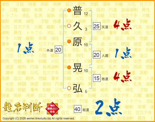 普(12画)久(3画)原(10画) 晃(10画)弘(5画)