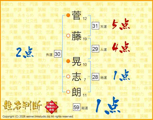 菅藤晃志朗さんの天運は31画の5点!