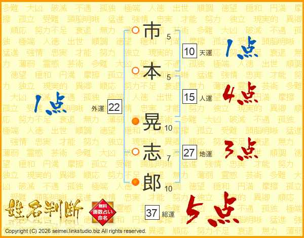 市本晃志郎さんの総運は37画の5点!