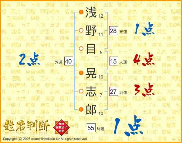 浅野目晃志郎さんの人運は15画の4点!