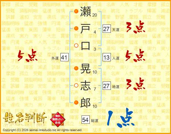 瀬(20画)戸(4画)口(3画) 晃(10画)志(7画)郎(10画)