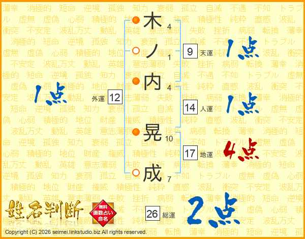 木ノ内晃成さんの総運は26画の2点!