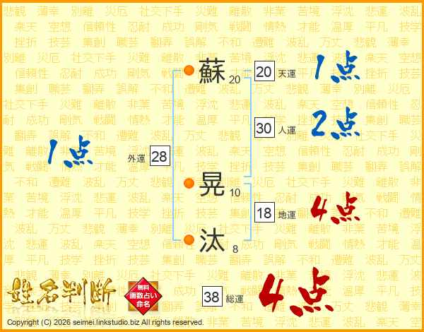 蘇晃汰さんの総運は38画の4点!