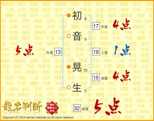 初音晃生さんの総運は32画の5点!
