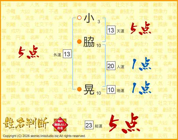 小脇晃さんの総運は23画の5点!