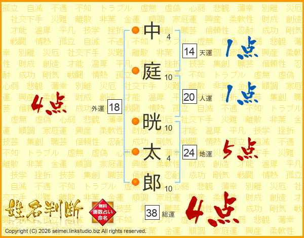 中庭晄太郎さんの総運は38画の4点!