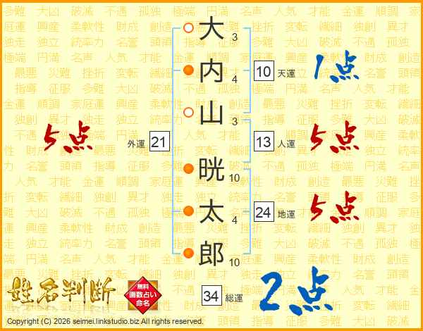 大内山晄太郎さんの外運は21画の5点!