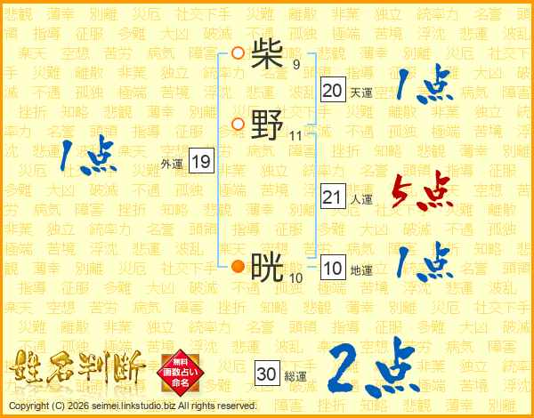 柴野晄さんの総運は30画の2点!