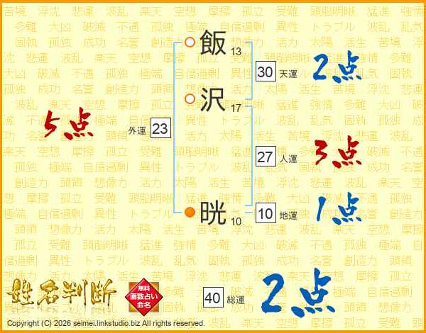 飯沢晄さんの天運は30画の2点!
