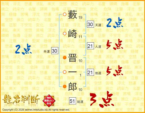 藪崎晋一郎さんの人運は21画の5点!