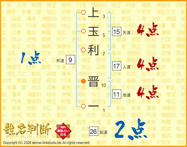 上玉利晋一さんの総運は26画の2点!