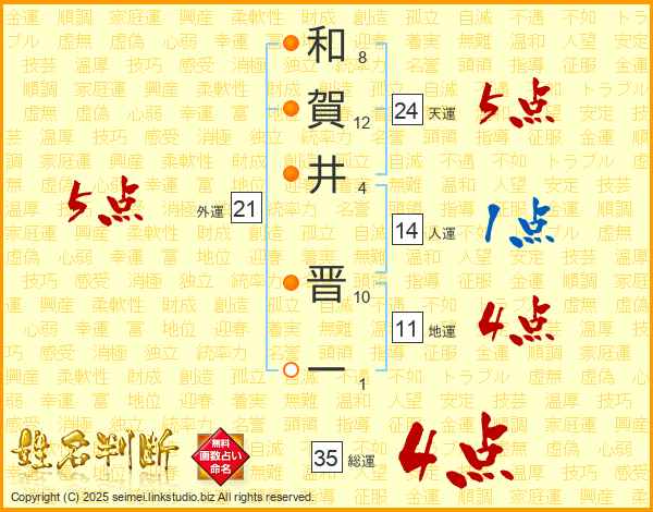和賀井晋一さんの総運は35画の4点!