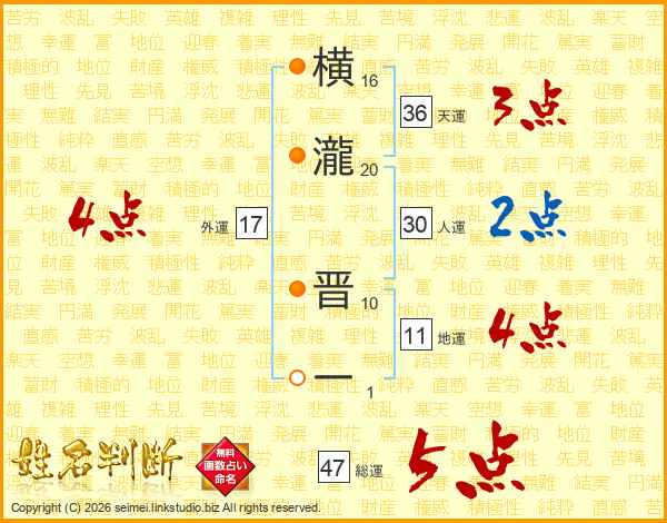 横瀧晋一さんの総運は47画の5点!