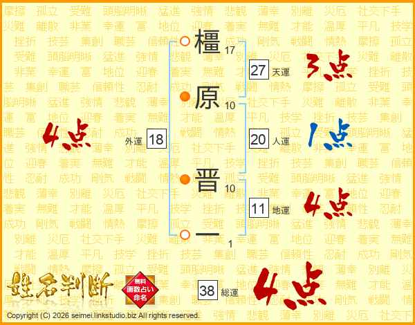 橿原晋一さんの総運は38画の4点!