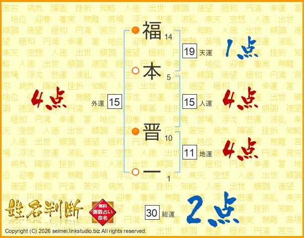 福本晋一さんの総運は30画の2点!