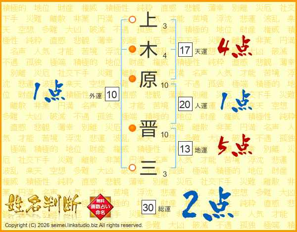 上木原晋三さんの総運は30画の2点!