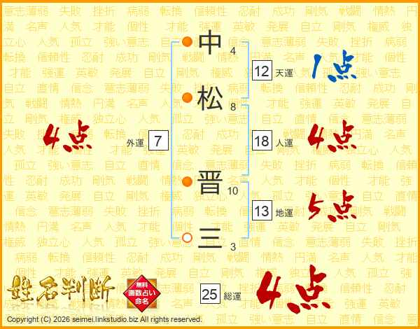 中松晋三さんの総運は25画の4点!