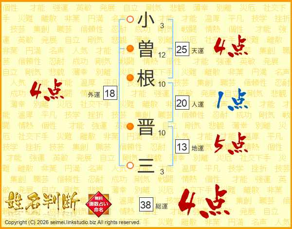 小曽根晋三さんの総運は38画の4点!