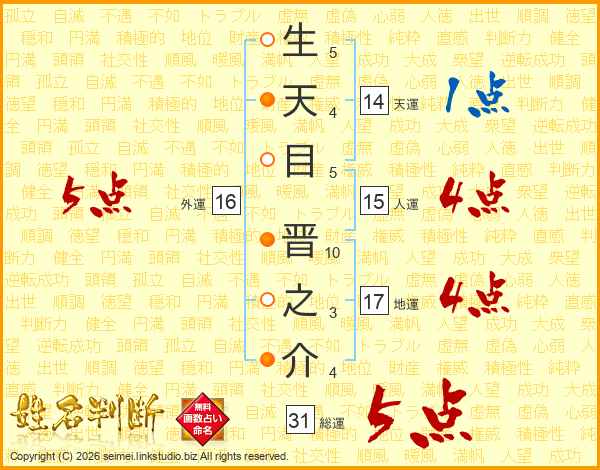 生天目晋之介さんの総運は31画の5点!